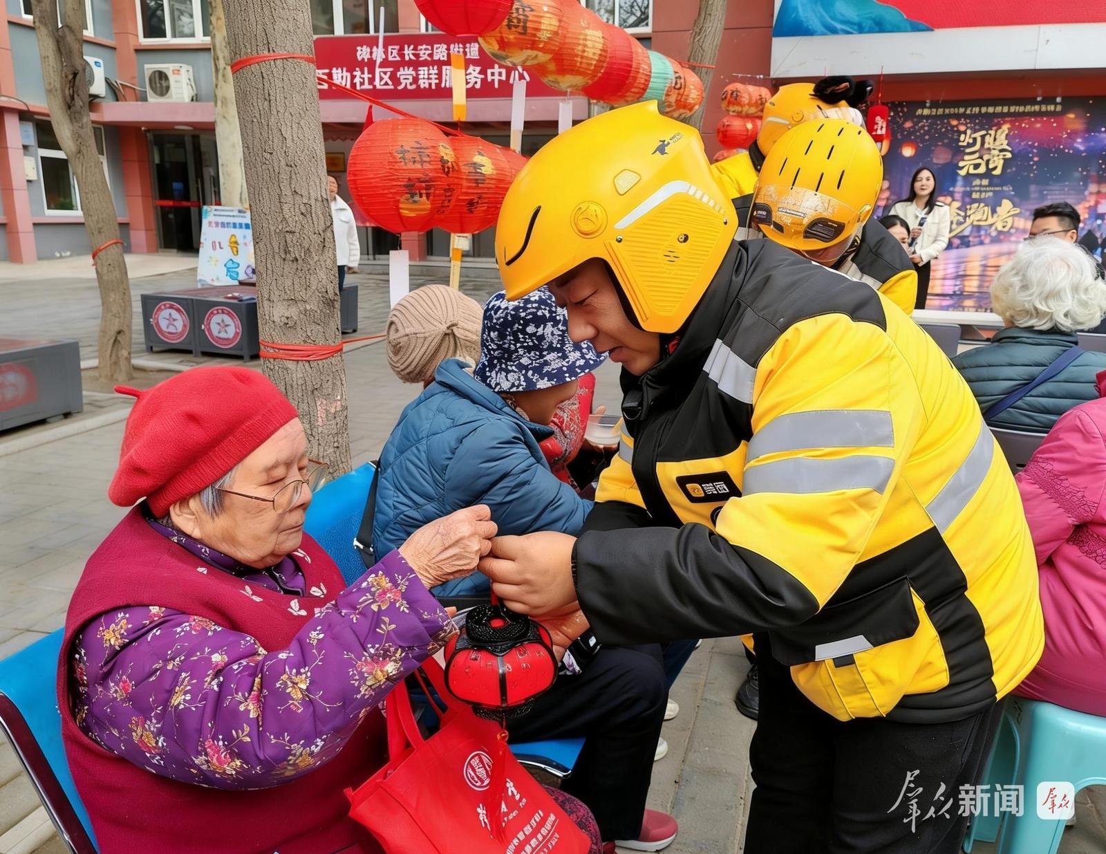 今年元宵节,长安路街道新西里社区党群服务中心前格外热闹。猜灯谜、玩游戏、品汤圆,欢声笑语中,20余名骑手受邀而来。
