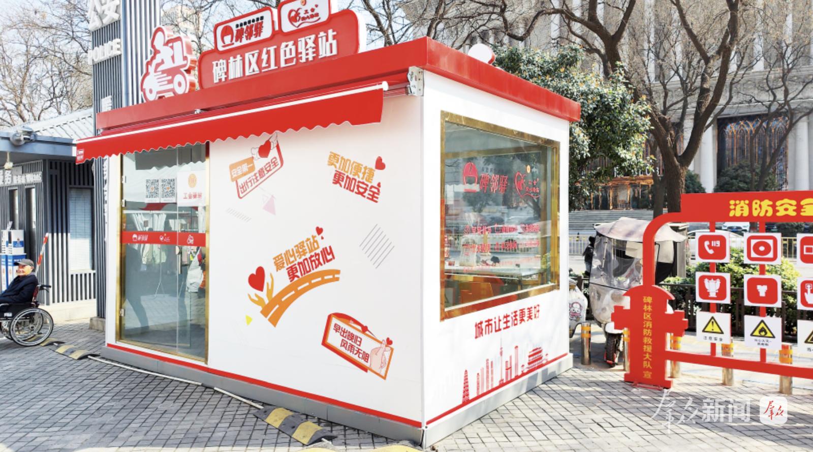 如今,碑林区这样的驿站有130余个,遍布街头巷尾,饮水、充电、热饭、应急药品一应俱全。打开骑手APP,最近的驿站在哪里、怎么走,一目了然。