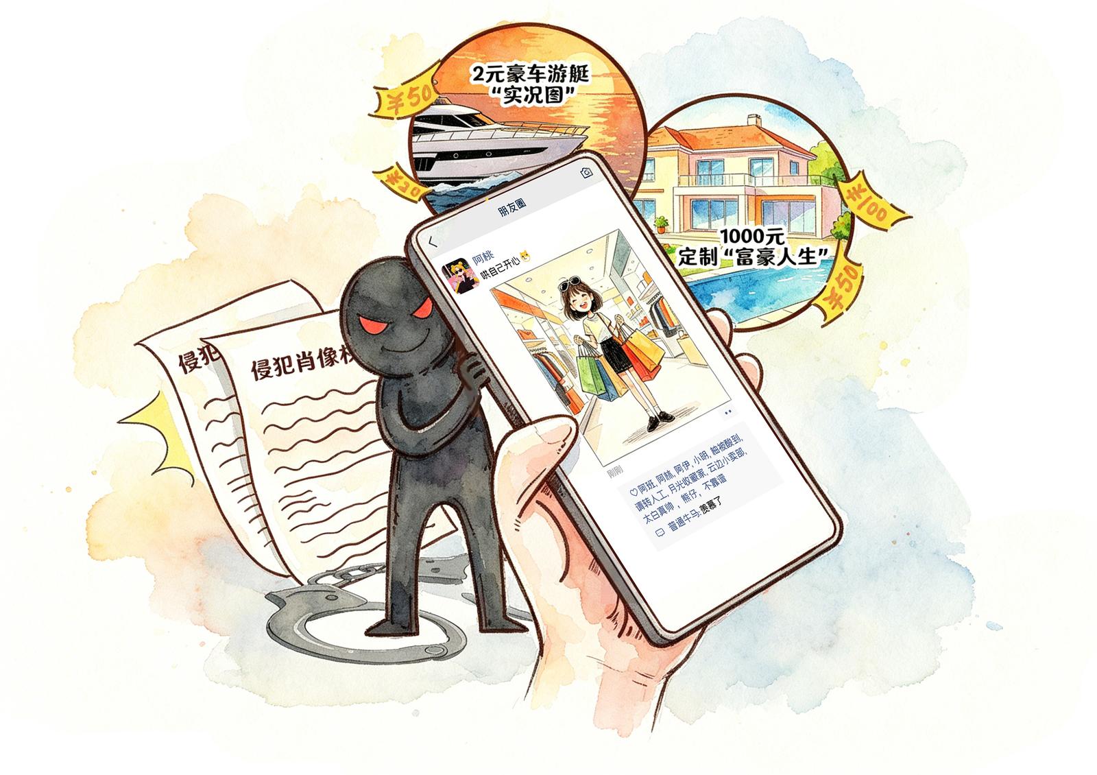 商家售卖的实况图多盗用他人作品,涉嫌侵犯肖像权与著作权;定制摆拍更被用于婚恋、商务伪装,易引发欺诈纠纷,触碰法律红线。这一现象折射出部分人畸形的社交心态,将朋友圈异化为攀比舞台,用虚假掩盖真实,消解真诚、崩塌信任。