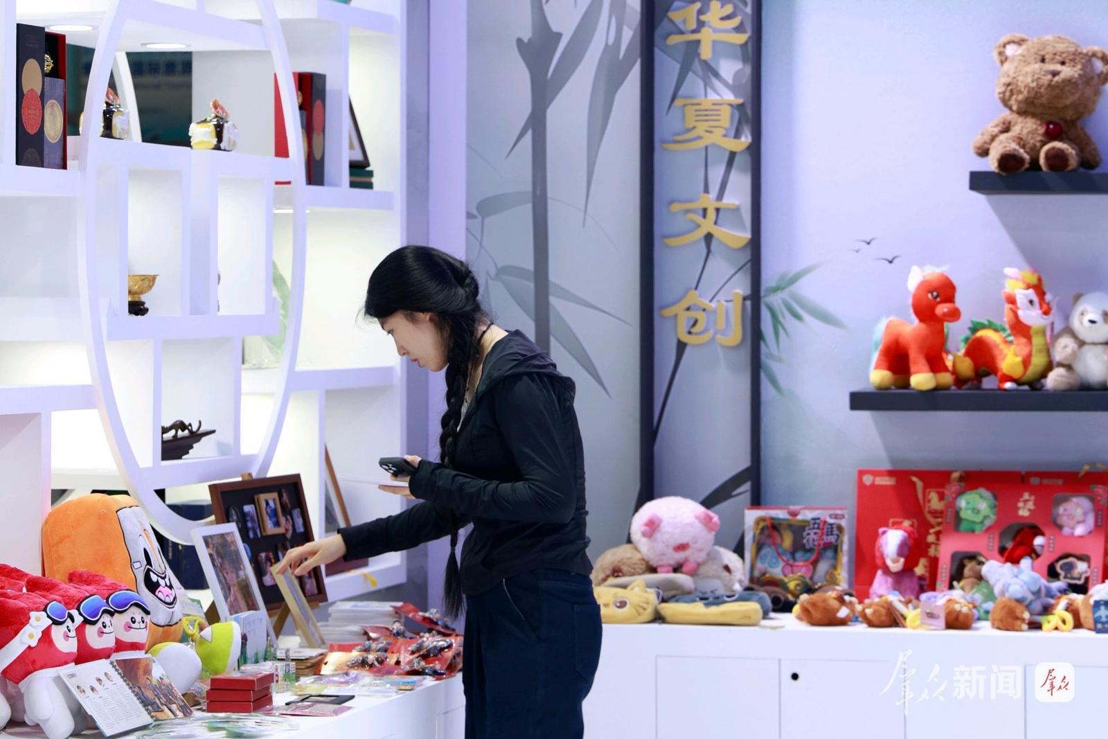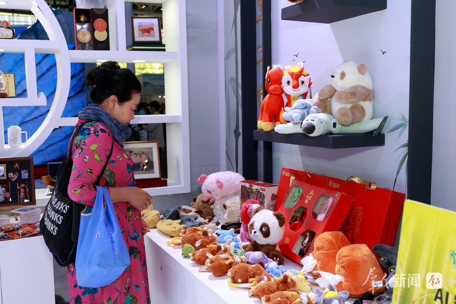 一只名为“七仔”的棕色大熊猫毛绒玩偶成功占据文创区域的“C位”。它可不是简单的毛绒玩偶,它是加载了“文博”大模型的AI智能玩偶。现场工作人员边演示边介绍,“这款玩偶搭载了儿童专属AI大模型,具备连续对话、专属音色定制和多语种对话等创新交互体验。孩子们在游玩过程中可以通过互动提问,了解陕西的历史文化知识。”